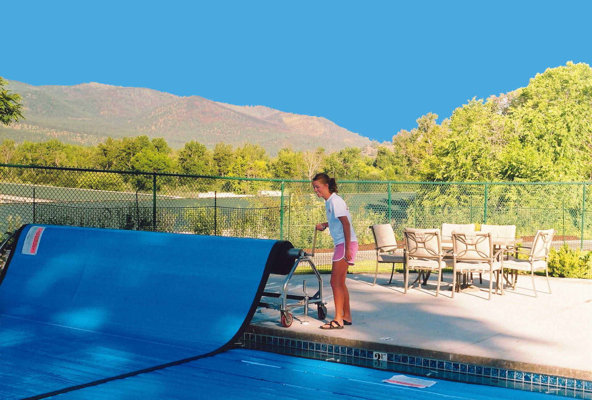The act of covering a pool when it is not in use is an effective means of reducing pool heating costs by 50-70%.